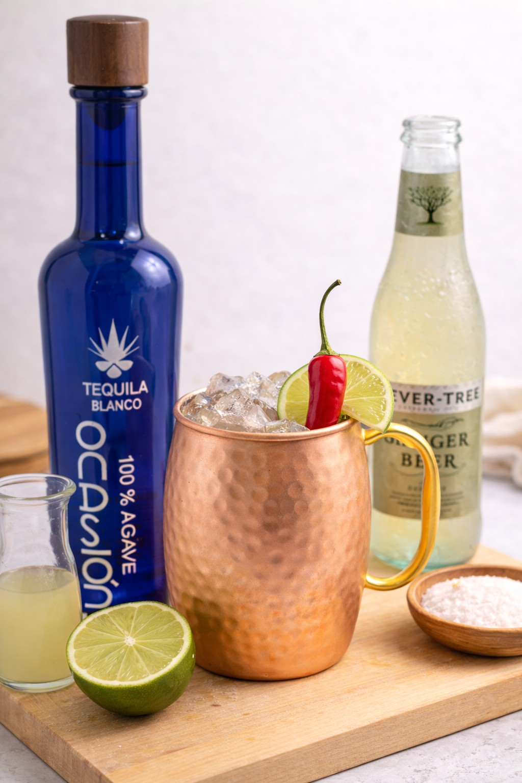 Fill a glass with ice. Add the tequila and ginger beer into the glass and stir.